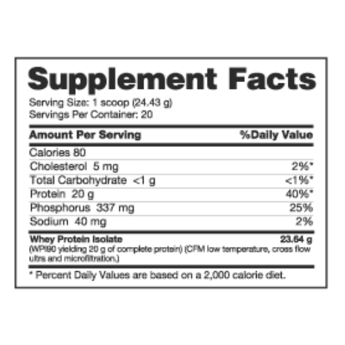 This whey isolate protein powder has NOT been amino or nitrogen spiked and contains NO whey concentrate, maltodextrin, dextrose, creamer, or other fillers. What you see on the label is what you get – a clean and clear whey protein isolate.